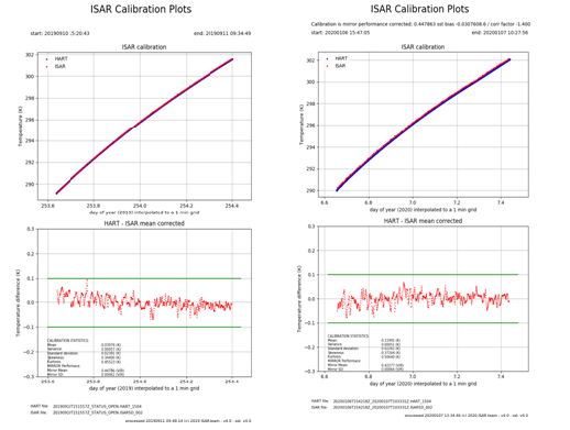 Figure 1: Example laboratory calibration of the ISAR instrument pre- and post- deployment on the Pont Aven cruise ship